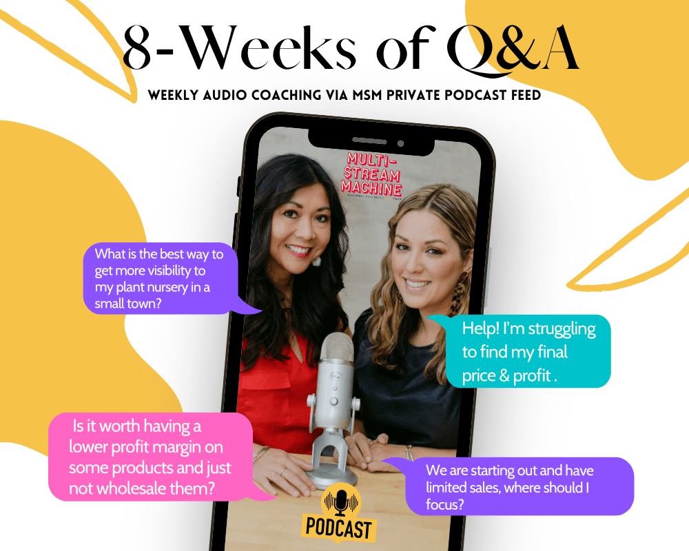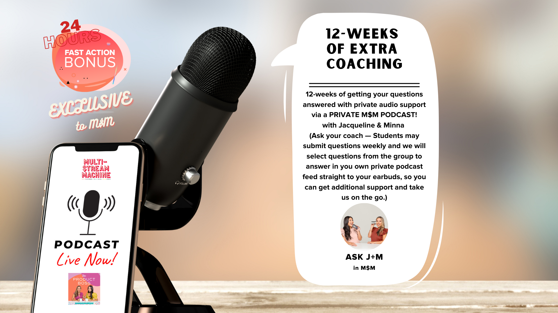 12 weeks of getting your questions answered with private audio support via a PRIVATE M$M PODCAST! with Jacqueline and Minna. Students may submit questions weekly and we will select questions from the group to answer in your own private podcast for additional support.