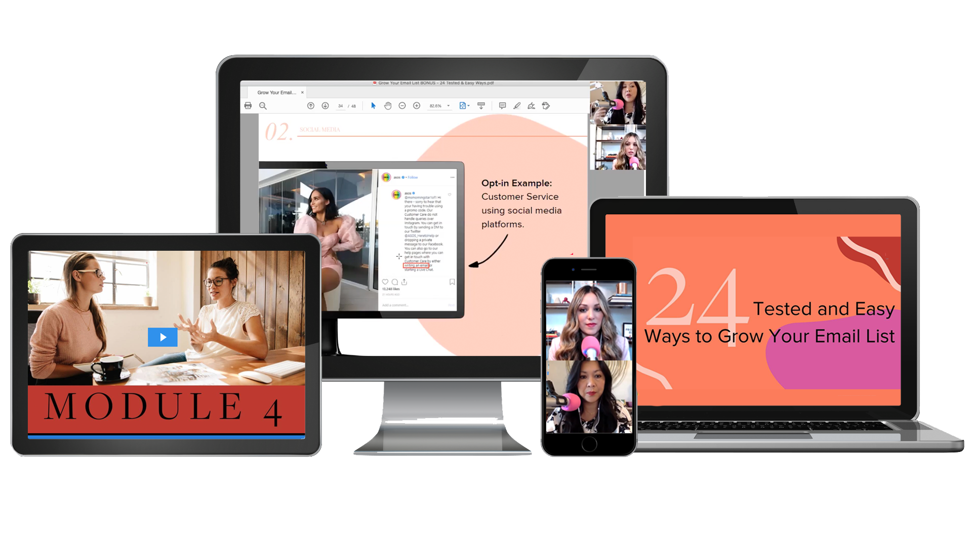 You’ll have lifetime access to the core content once you complete your 12 weeks! After enrolling, you have unlimited access to the modules for as long as you like, on all of your devices, so long as this program is being offered. You’ll also get access to all future core program updates. So move at your own pace and build your business right!
